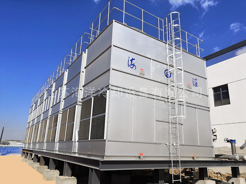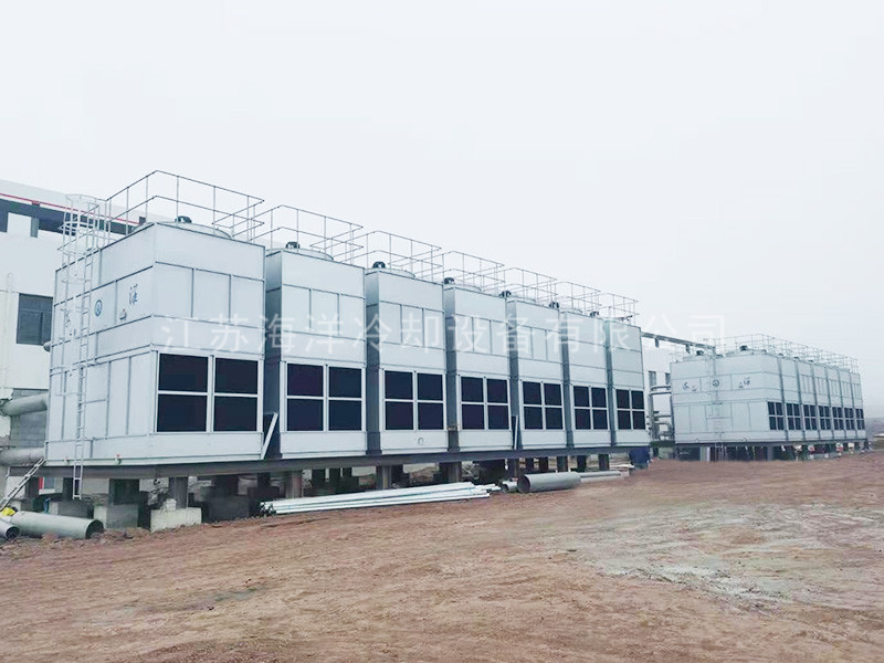 Closed cooling tower is a deformation and development of traditional cooling tower, which is essentially a combination of evaporative cooling tower, cooler and wet cooling tower. The process fluid flows through the pipe, and the water in the collecting tank at the bottom of the tower is pumped by the spray pump, and then sent to the outside of the pipe for uniform spraying, and the indirect heat exchange with the process fluid is carried out. The air flows through the outside of the pipe under the action of the fan, and the heat is discharged out of the tower.