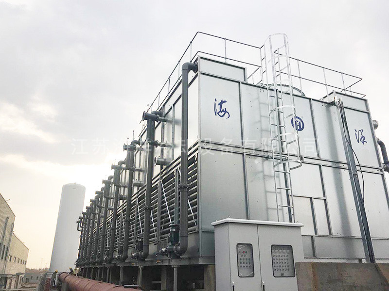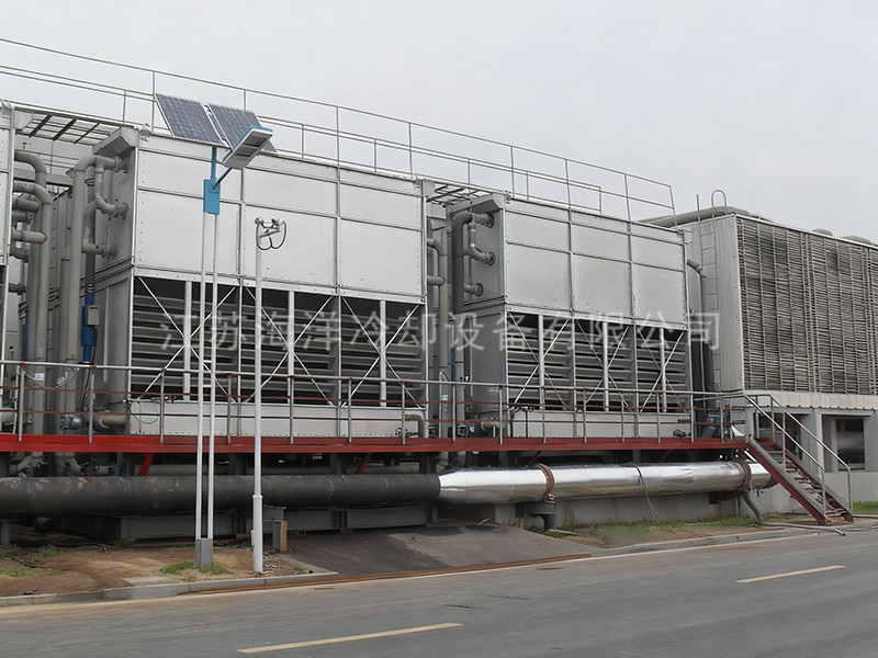 The closed cooling tower is a kind of evaporative cooler, which uses the spray water outside the coil to absorb the heat of the cooled fluid inside the coil after partial evaporation. The closed cooling tower uses two stages of cooling: the first stage is air cooling, and the cooler coil is cooled by air; The secondary cooling uses air cooling and spray. When the ambient temperature is relatively high, the secondary cooling is used. The spray system sprays water onto the surface of the cooler while the air cooling, which can take away the heat of the coil when the water evaporates, thus achieving the cooling effect.